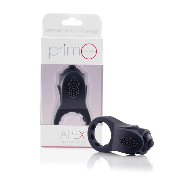 The PrimO Apex silicone vibrating ring hits sensational heights with 100% premium silicone construction and powerful 4-function motor positioned vertically for unparalleled stimulation. Matching luxurious taste with an economical price, the Apex vibrating erection ring inspires couples to reach the ultimate peak of pleasure.