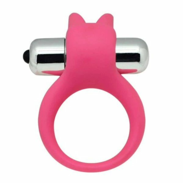 Silicone stretchy cock ring (inner diameter 3,5 cm) with vibe and Rabbit massager. Easy on touch button. Phthalate free and waterproof.