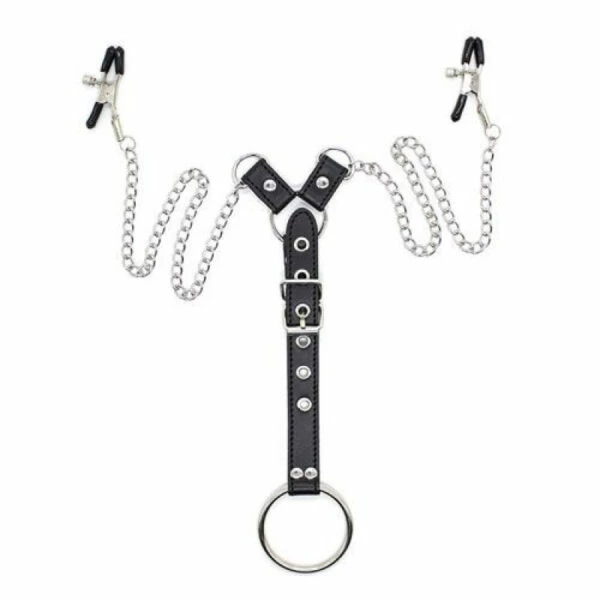 Y-shaped chain with nipple clamps and penis ring. For BDSM enthusiasts but also for beginners who wish to add an extra amount of passion and excitement to the intercourse. It’s a Toyz4Lovers item: There are no brakes with Toyz4Lovers’ Fetish Art line!