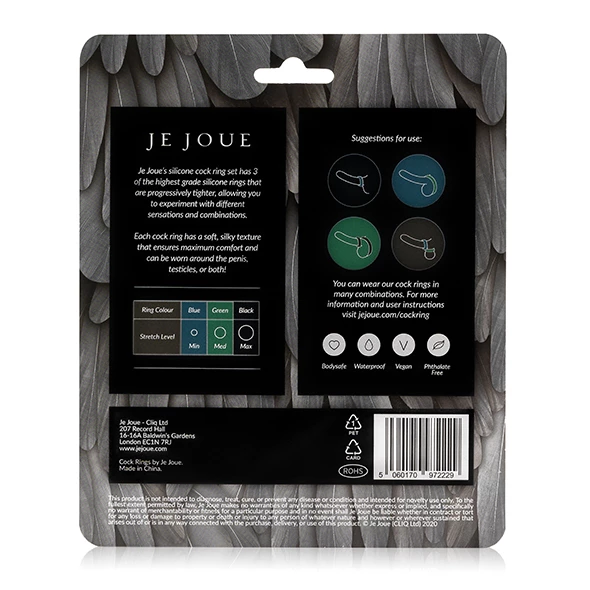These three luxury silicone cock rings get progressively tighter, allowing you to experiment with different sensations and combinations. The perfect set for anyone looking to work their way up to the most intense and prolonged orgasm possible.