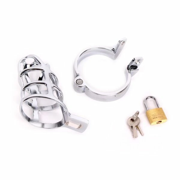 Simply place the ring section behind the testicles and then insert the penis into the cage. Fit the two pieces into each other and lock it with the included padlock.