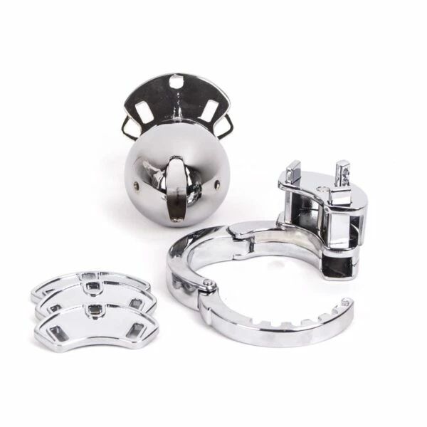 Note: Includes cage, cock ring, 3 spacers, lock, and key.