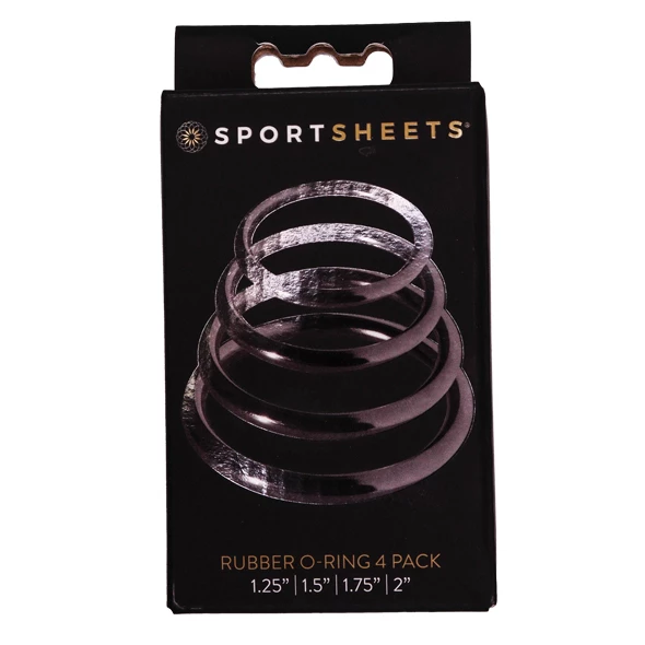 Expand the versatility of your favorite SportSheets strap-on harness with four sizes of rubber O-rings. These moderately stretchy, latex-free rings allow you to affix new and exciting dildos from extra-small to extra-large to your favorite harness. Alternately, you can choose your ideal size and tightness to wrap around you penis or your balls and penis, and use them as a cock ring. With restricted blood-flow, your erection will be harder, more sensitive, and longer-lasting than ever before.